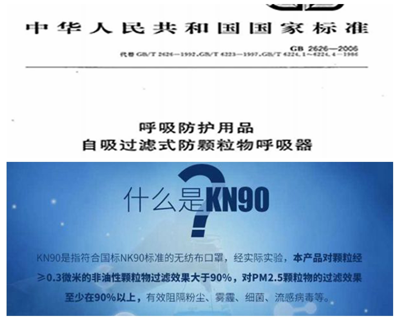 KN90:對(duì)于0.075微米以上的非油性顆粒物過濾效率大于90%