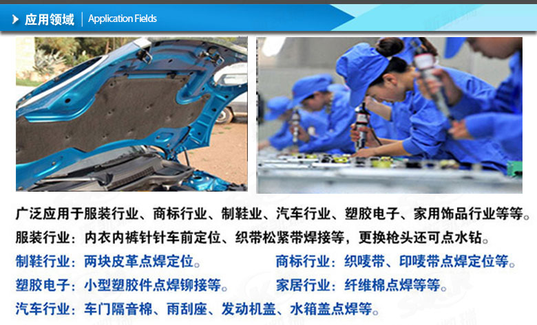 1.服裝行業(yè):超聲波手持焊接機可用于衣物上的商標制作,如T恤、褲子等。精準的點焊技術(shù)保證商標不易脫落,提高了服裝的品質(zhì)和外觀。