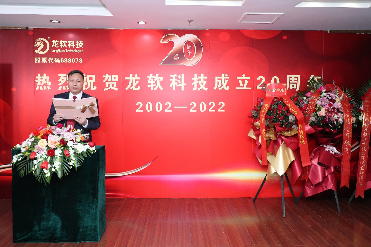2022年2月22日,北京龍軟科技股份有限公司成立20周年。董事長(zhǎng)毛善君教授攜公司高管及部分員工在北京世紀(jì)科貿(mào)大廈公司總部舉行了一場(chǎng)簡(jiǎn)約歡樂的慶典大會(huì)。