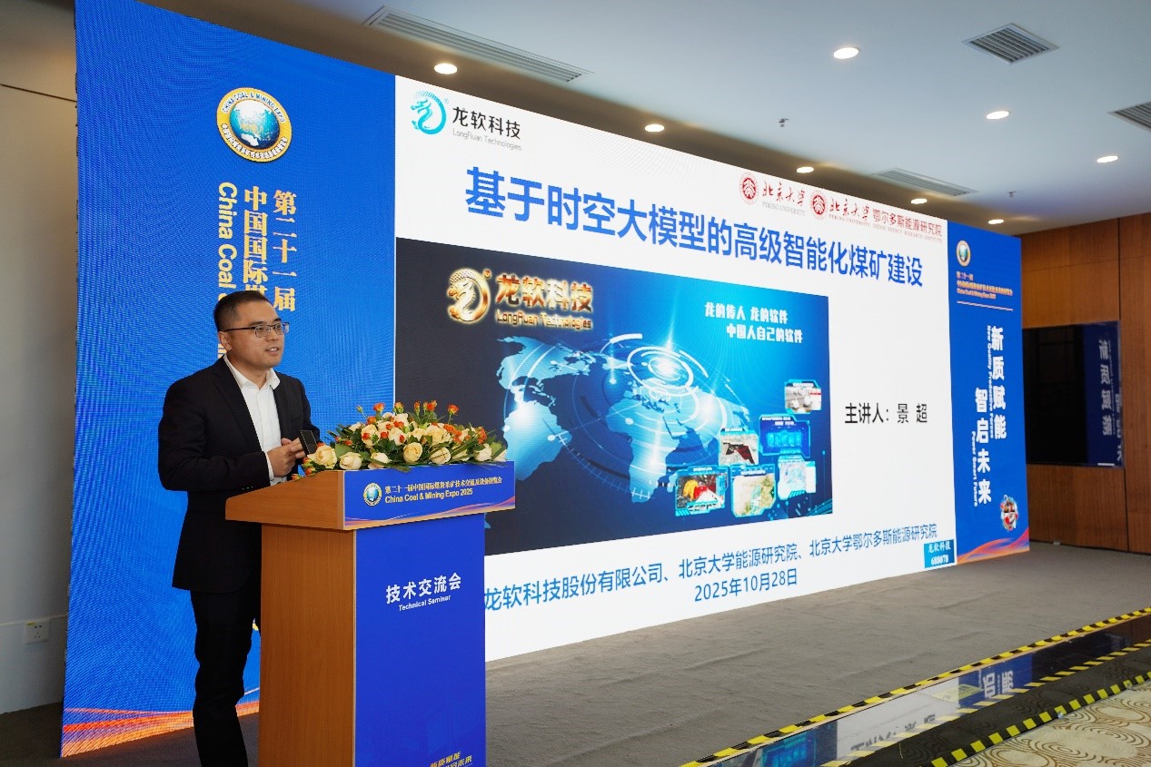 展會(huì)期間,北京大學(xué)教授、龍軟科技董事長(zhǎng)、北京大學(xué)鄂爾多斯能源研究院首席科學(xué)家毛善君教授應(yīng)邀在2025中國(guó)國(guó)際煤炭發(fā)展論壇上做《基于時(shí)空智能的高級(jí)智能化煤礦建設(shè)》專題報(bào)告。副總經(jīng)理、總工程師景超做龍軟科技《基于時(shí)空智能的高級(jí)智能化煤礦建設(shè)》專場(chǎng)技術(shù)交流。詳細(xì)介紹了龍軟科技-北京大學(xué)團(tuán)隊(duì)在智能化煤礦建設(shè)方面的創(chuàng)新成果和實(shí)踐經(jīng)驗(yàn),提出了高級(jí)智能化礦井建設(shè)的6626工程,重點(diǎn)匯報(bào)了龍軟時(shí)空大模型1.0Loong Model1.0)的內(nèi)涵和實(shí)際應(yīng)用,并分享了團(tuán)隊(duì)在煤礦裝備智能化、地測(cè)透明化、分析在線化、智能系統(tǒng)化、控制協(xié)同化、生產(chǎn)綠色化等方面取得的顯著成果。其中基于透明化地測(cè)保障系統(tǒng)的智能化礦山管控平臺(tái)及其應(yīng)用系統(tǒng),相關(guān)核心技術(shù)已獲中國(guó)和美國(guó)、加拿大、澳大利亞、俄羅斯發(fā)明專利。