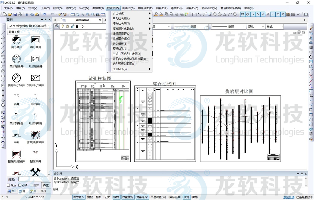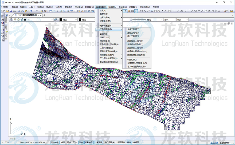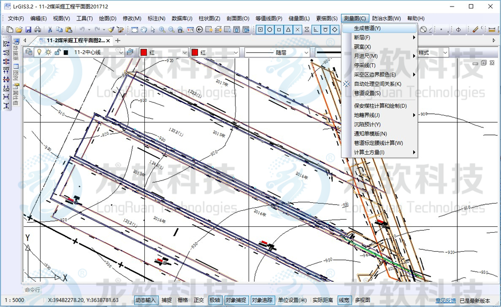 地測(cè)圖形協(xié)同管理系統(tǒng)主要包括地測(cè)數(shù)據(jù)庫(kù)管理、等值線圖、測(cè)量圖、儲(chǔ)量圖、柱狀圖、剖面圖、素描圖、防治水圖、瓦斯地質(zhì)圖等模塊。該系統(tǒng)以先進(jìn)的算法、精準(zhǔn)的空間數(shù)據(jù)信息處理、高效的圖形處理流程,實(shí)現(xiàn)等值線圖、采掘工程平面圖、鉆孔柱狀圖、綜合柱狀圖、煤巖層對(duì)比圖、勘探線剖面圖、預(yù)想剖面圖、底板等高線及儲(chǔ)量估算圖、巷道素描圖等地測(cè)圖件的繪制與管理,是礦井相關(guān)專(zhuān)業(yè)制圖的基礎(chǔ)。